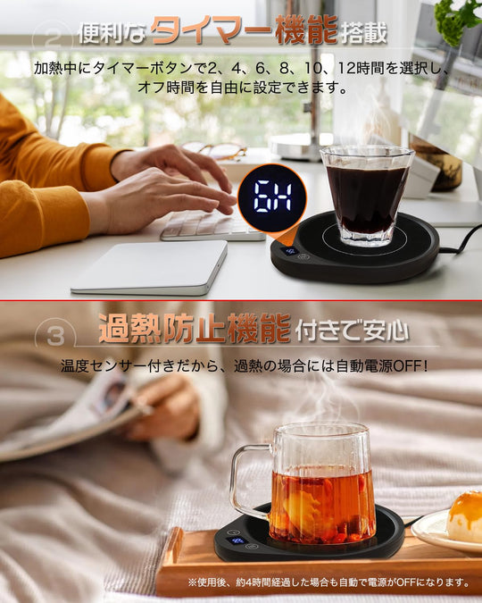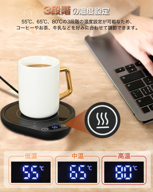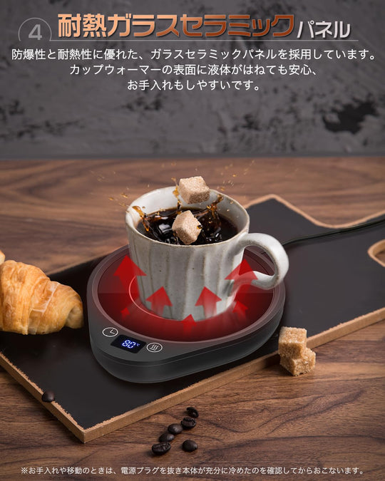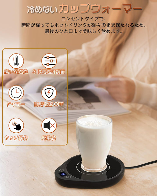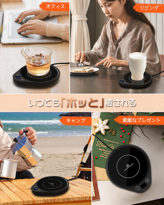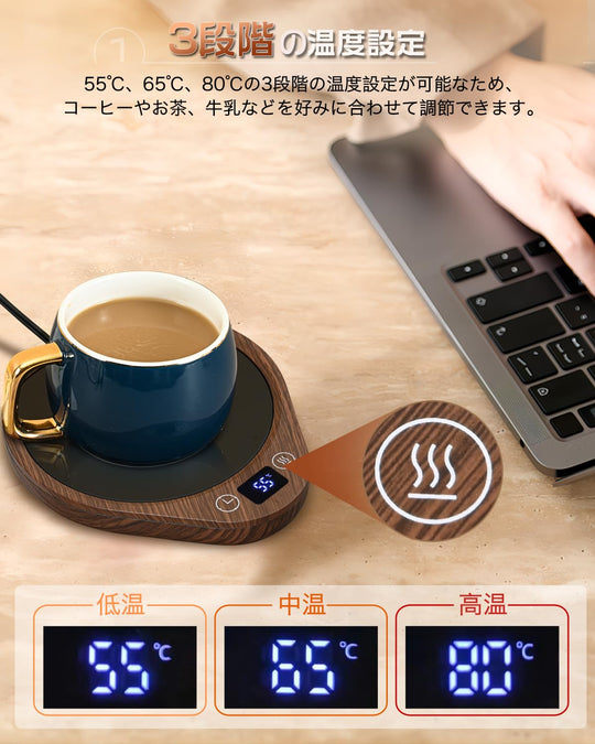 【飲み物がずっとアツアツ】 カップウォーマー 保温コースター コーヒーウォーマー 3段階温度設定 切タイマー 自動電源オフ カップヒーター ドリンク保温器 急速加熱 オフィス 職場 デスク 卓上 プレゼント ギフト 木目