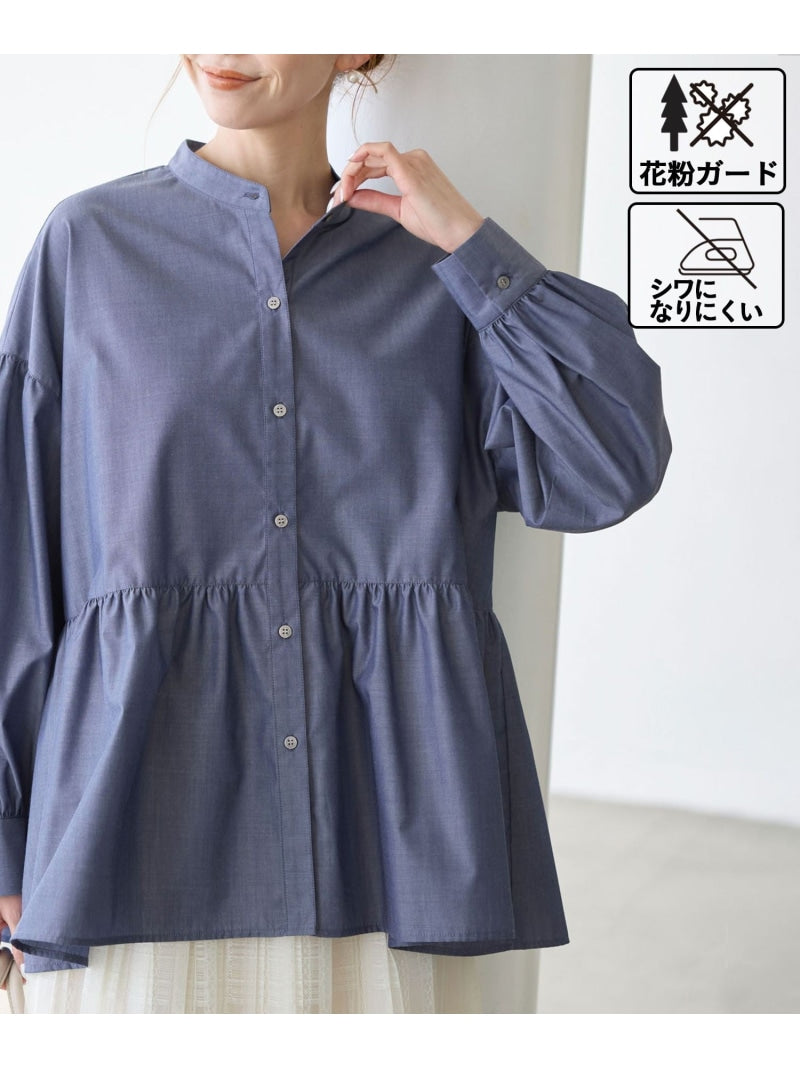 【花粉ガード・防シワ】ギャザーシャツブラウス ROPE' PICNIC ロペピクニック トップス シャツ・ブラウス ピンク ブルー ネイビー ホワイト【送料無料】[Rakuten Fashion]