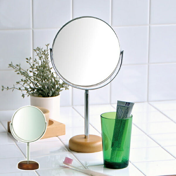 ミラー 高さ22.5cm 5インチ 卓上 両面 スタンドミラー 拡大鏡 木製 天然木 鏡 かがみ 化粧鏡 ( 拡大 卓上ミラー メイクミラー 卓上鏡 二面鏡 デスクミラー テーブルミラー メイク 化粧 両面鏡 丸型 コスメ おしゃれ ) 【3980円以上送料無料】