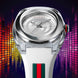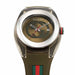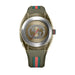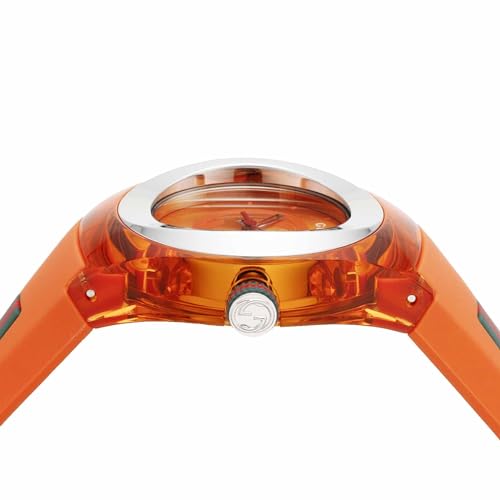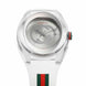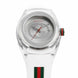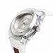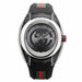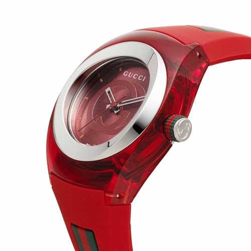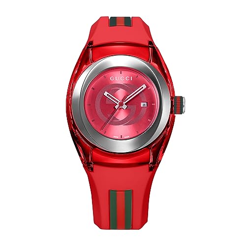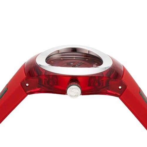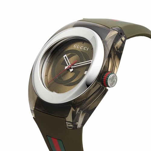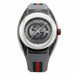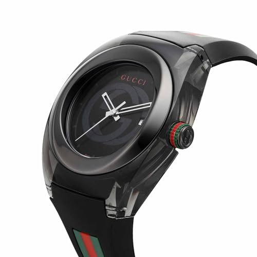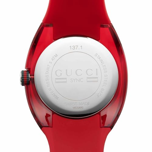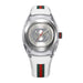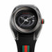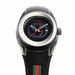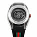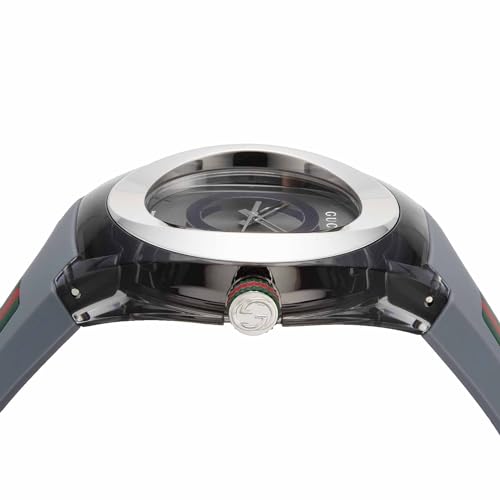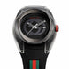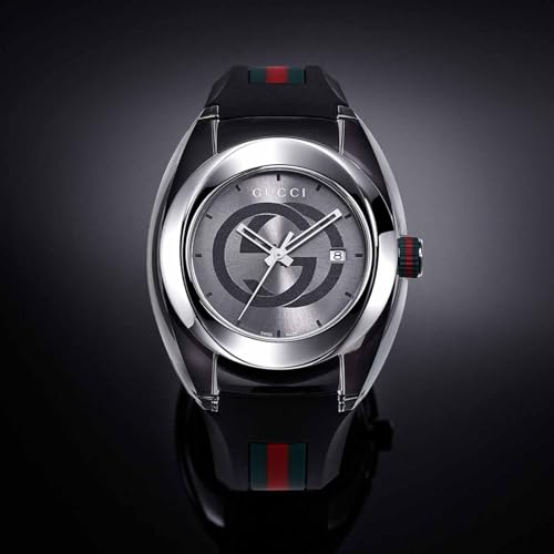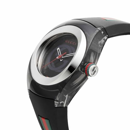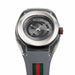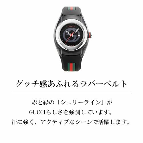 音楽を愛するデジタルネイティブなニュージェネレーションに向けてデザインされた、モダンで洗練されたウォッチ コレクション 「グッチ SYNC 」。ダイアルにはグッチのアイコニックなシンボルであるインターロッキングGが配され、ステンレススチール ケースのサイドの9 時位置には GUCCI のロゴが刻印されています。 また、ラバーストラップには、アイコニックなグッチのウェブが配されています。