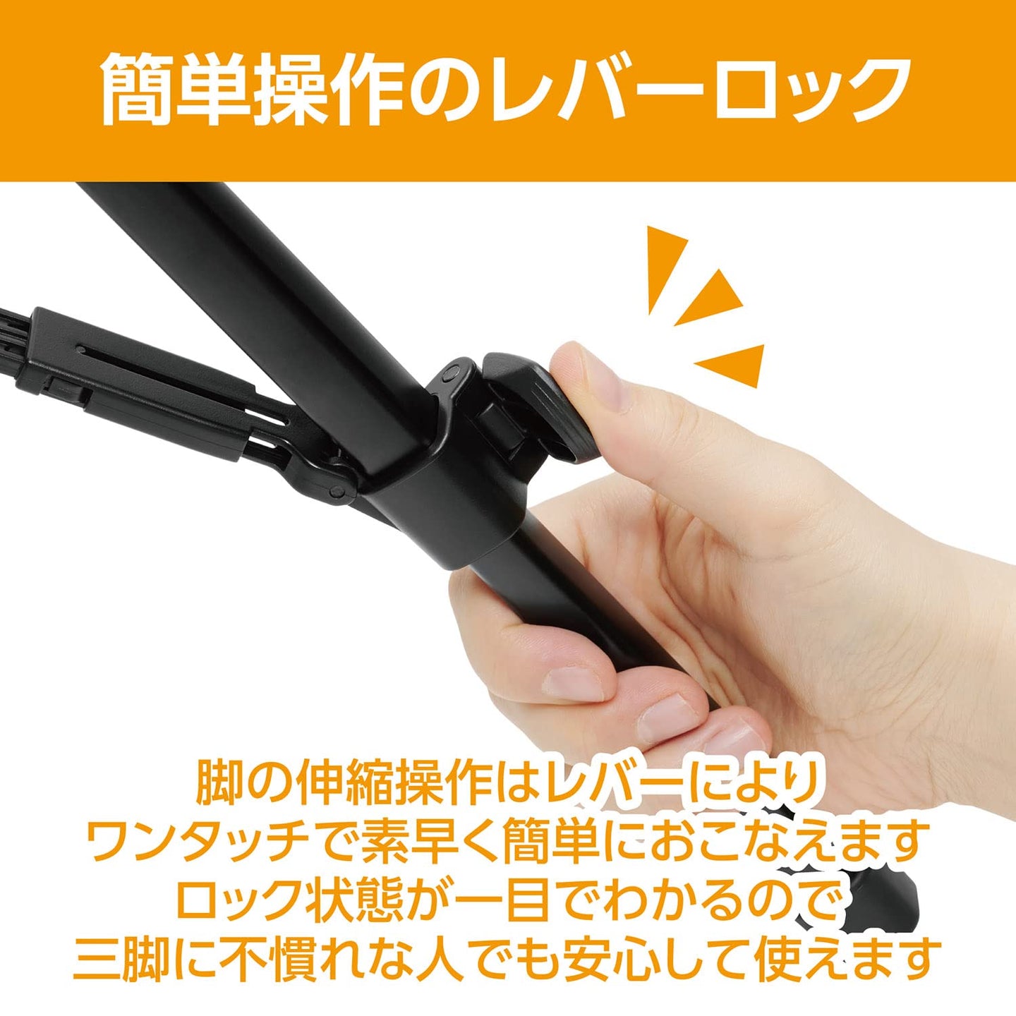 ■ 脚パイプの伸縮はロック状態が一目でわかるレバー式で固定するのであんしん安全