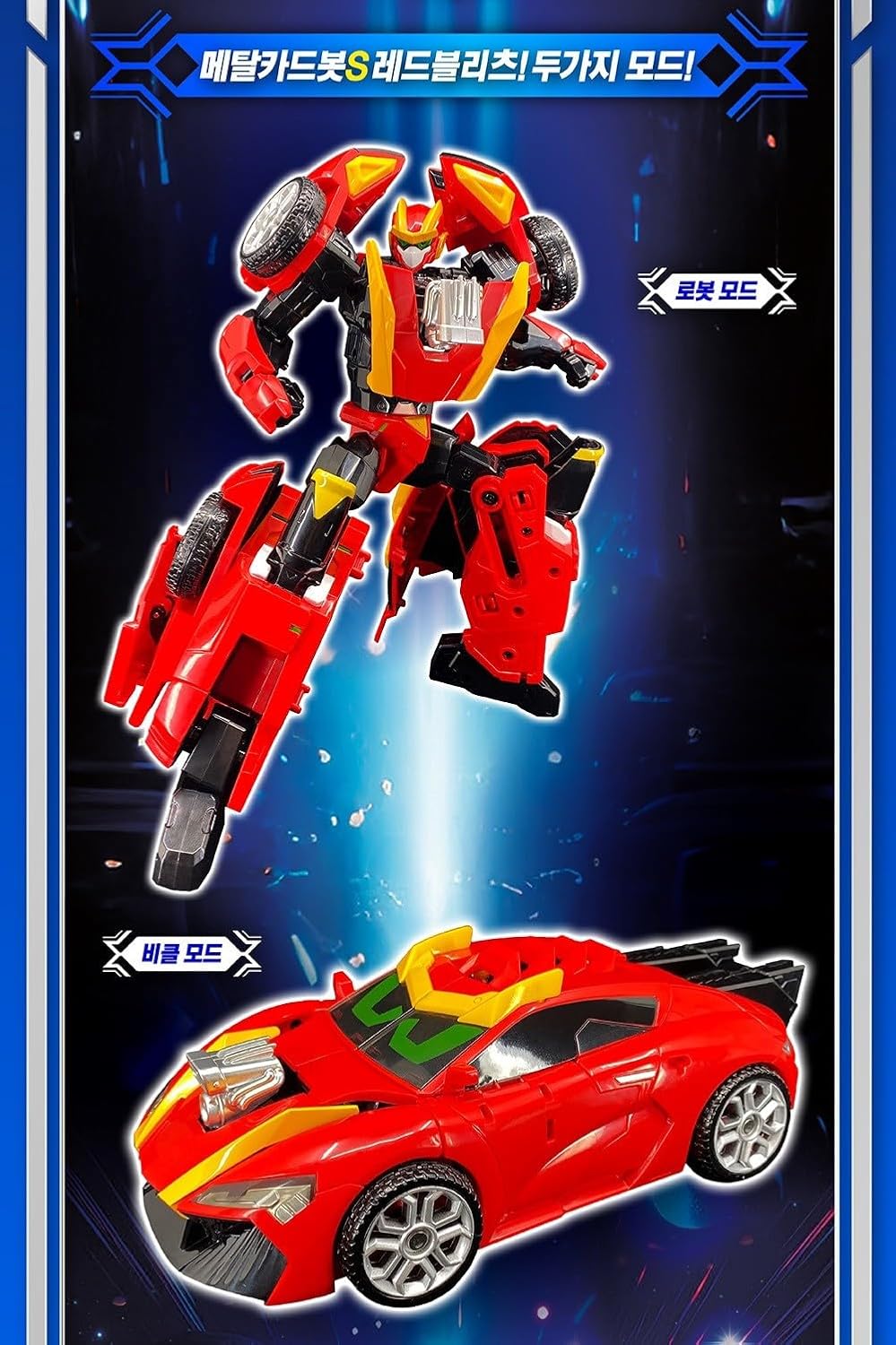 **レッドブリッツ(Red Blitz)**は、韓国アニメ『メタルカードボットS』に登場するスポーツカー型の変形ロボットです。 スピード感とパワーを感じさせるデザインで、子どもたちの想像力とヒーローごっこ遊びを刺激します。 鮮やかな赤いカラーリングとダイナミックなディテールが特徴で、「ロボットカード」と「ウェポンカード」の2種類のメタルカードが付属しています。 (※「メタルカード」は名称のみで、金属製ではありません。) 本体はABS樹脂製で、対象年齢は3歳以上です。 パッケージサイズは約245×108×300mmで、韓国SAMGエンターテインメントの正式ライセンス商品です。 お子様へのプレゼントやコレクションにも最適な変形ロボット玩具です。