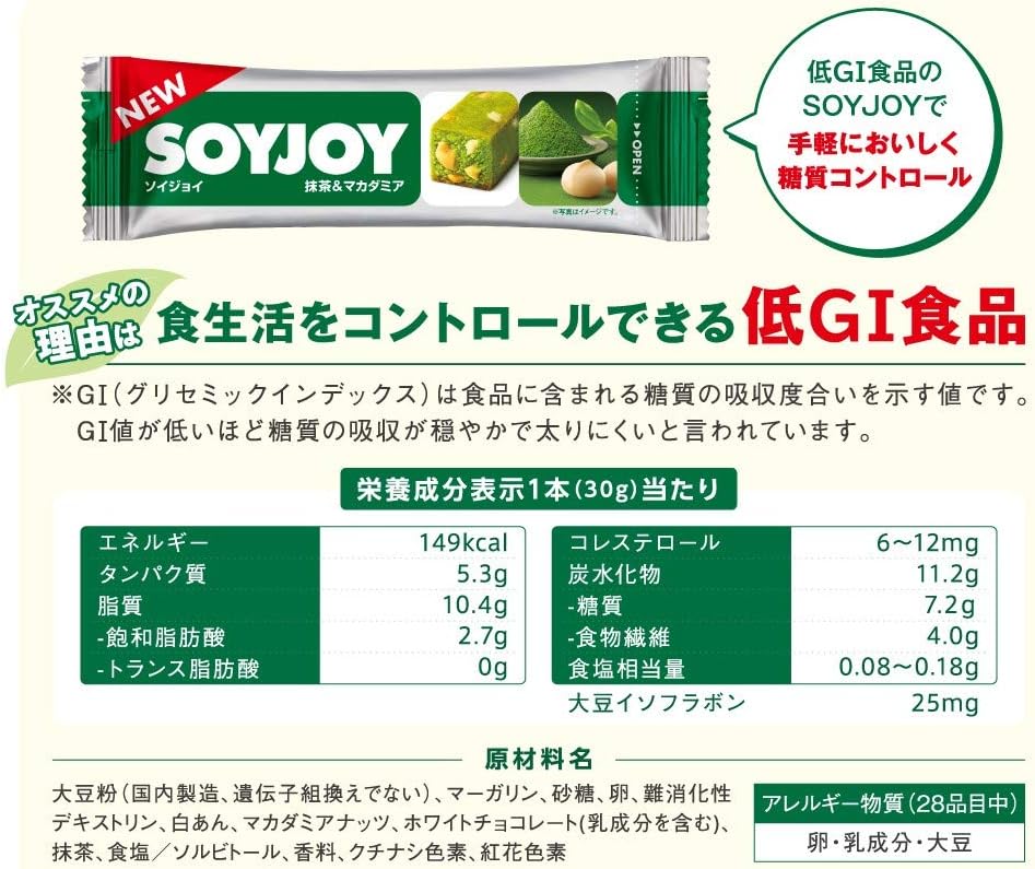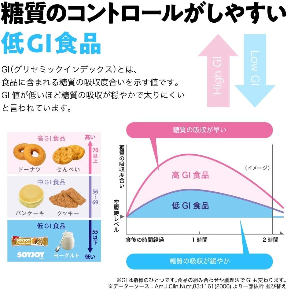 1小麦粉を使わず栄養豊富な大豆をまるごと粉にして使用。2ボロボロこぼれず、食べる時に音もしないので食べやすい。携帯・保存に便利3低GI食品。4グルテンフリー(米国FDA基準)。5ざくっとしたローストアーモンドの食べごたえ。*GI値が低いほど糖質の吸収がおだやかになるので、太りにくいと言われている。