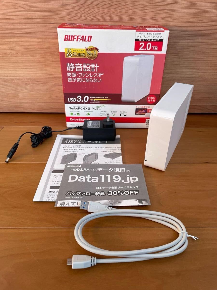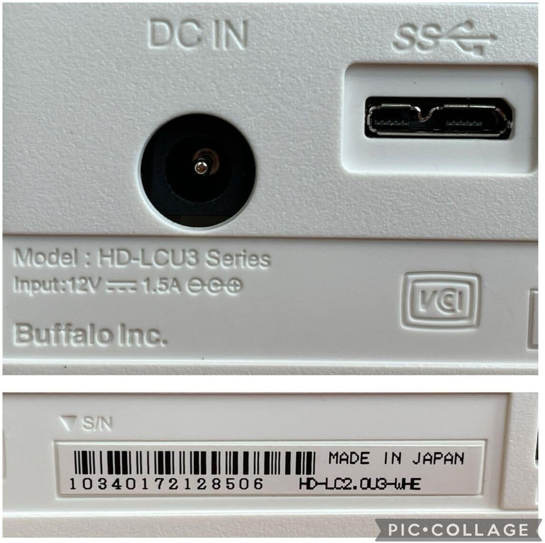 通電確認済 日本製 BUFFALO バッファロー HD-LC2.0U3-WHE 2.0TB パソコン&テレビ録画用 外付ハードディスク USB3.0 USB2.0 MAC対応