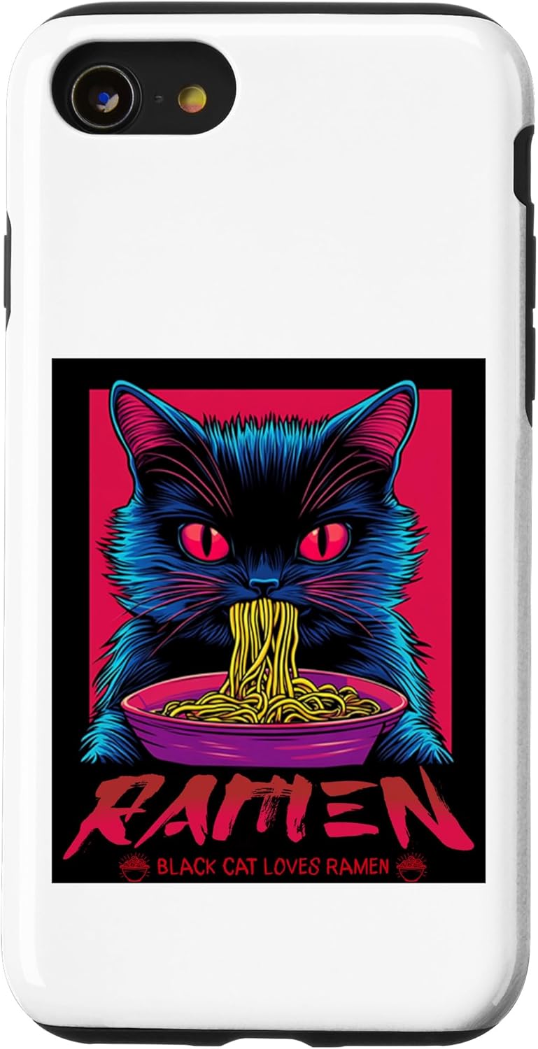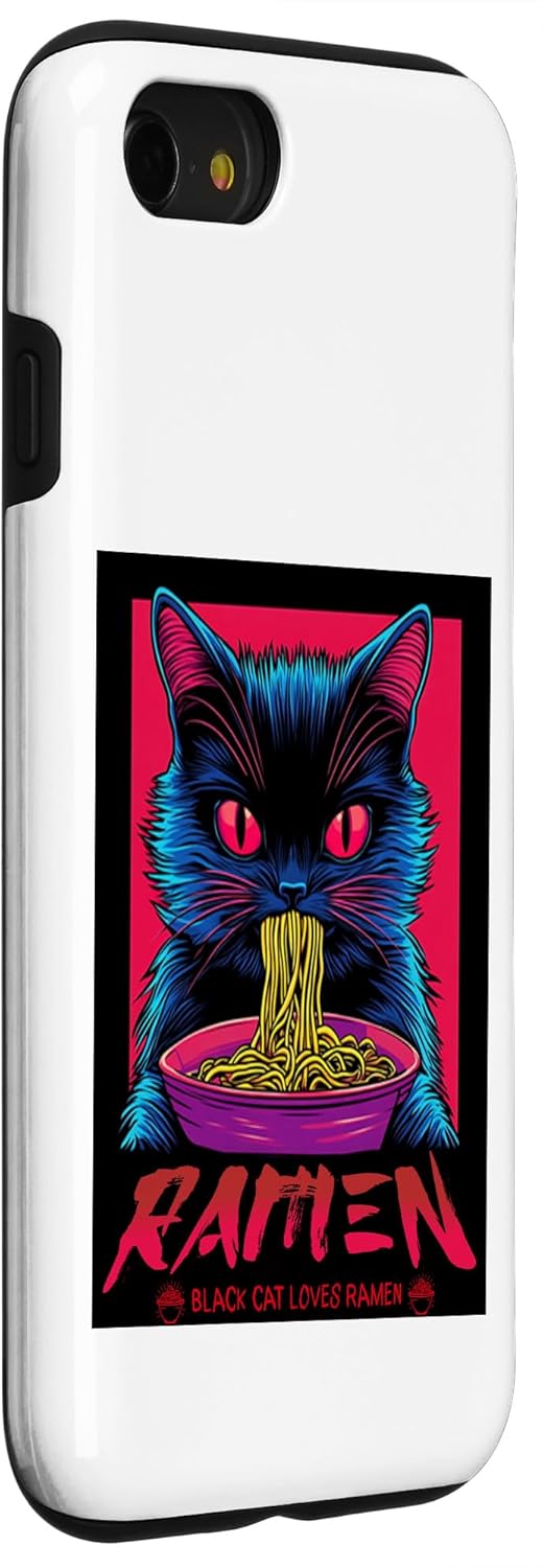 • このオシャレでカワイイ黒猫ラーメンのデザインは、日本のストリートウェアとマンガスタイルを融合させた、ラーメンを楽しむキュートな黒猫が描かれています。アニメ好き、猫ファン、レトロファッションが好きな人にぴったり。
