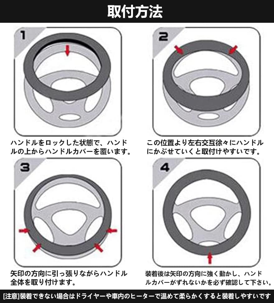 - 【サイズ】形状为円形(通常丸型)、直径は37~38cmのハンドルに対応します。軽自動車、普通車、ミバン、軽トラック汎用ハンドルカバー(ステアリングカバー)。オールシーズン向け。