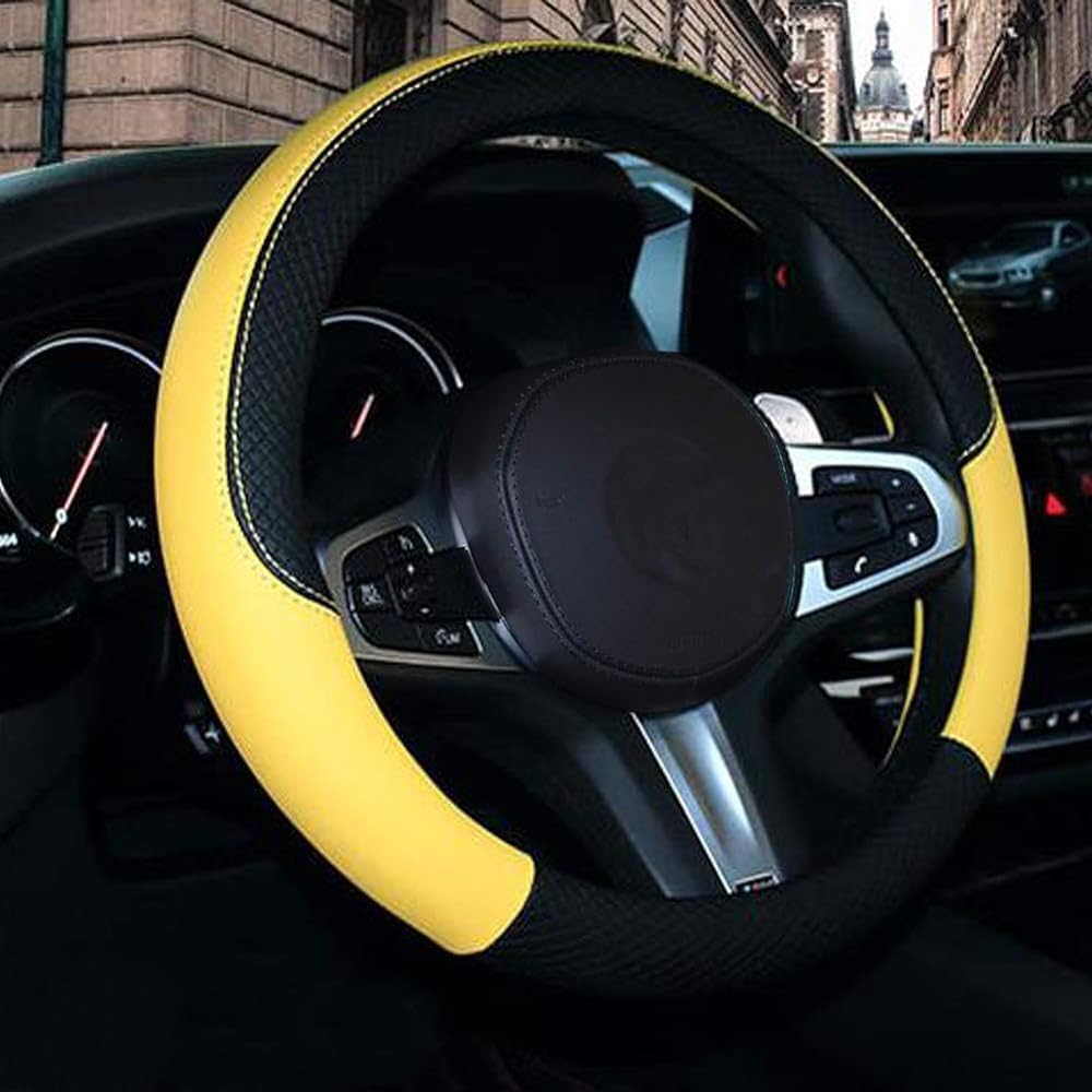 - 【機能性と設計感】スタイリッシュな外観と優れた職人技があなたの車をより豪華にします。形状は時間の経過とともに変化しません。 ステアリングホイールに新しいルックアンドフィールをもたらします。パンチングデザインで通気性よく、手触りがよし、耐久性に優れ、汗の吸収ができ、滑り止め機能も付いています、操作感が上等。高級感が溢れていて、室内のドレスアップに活躍できるでしょう。