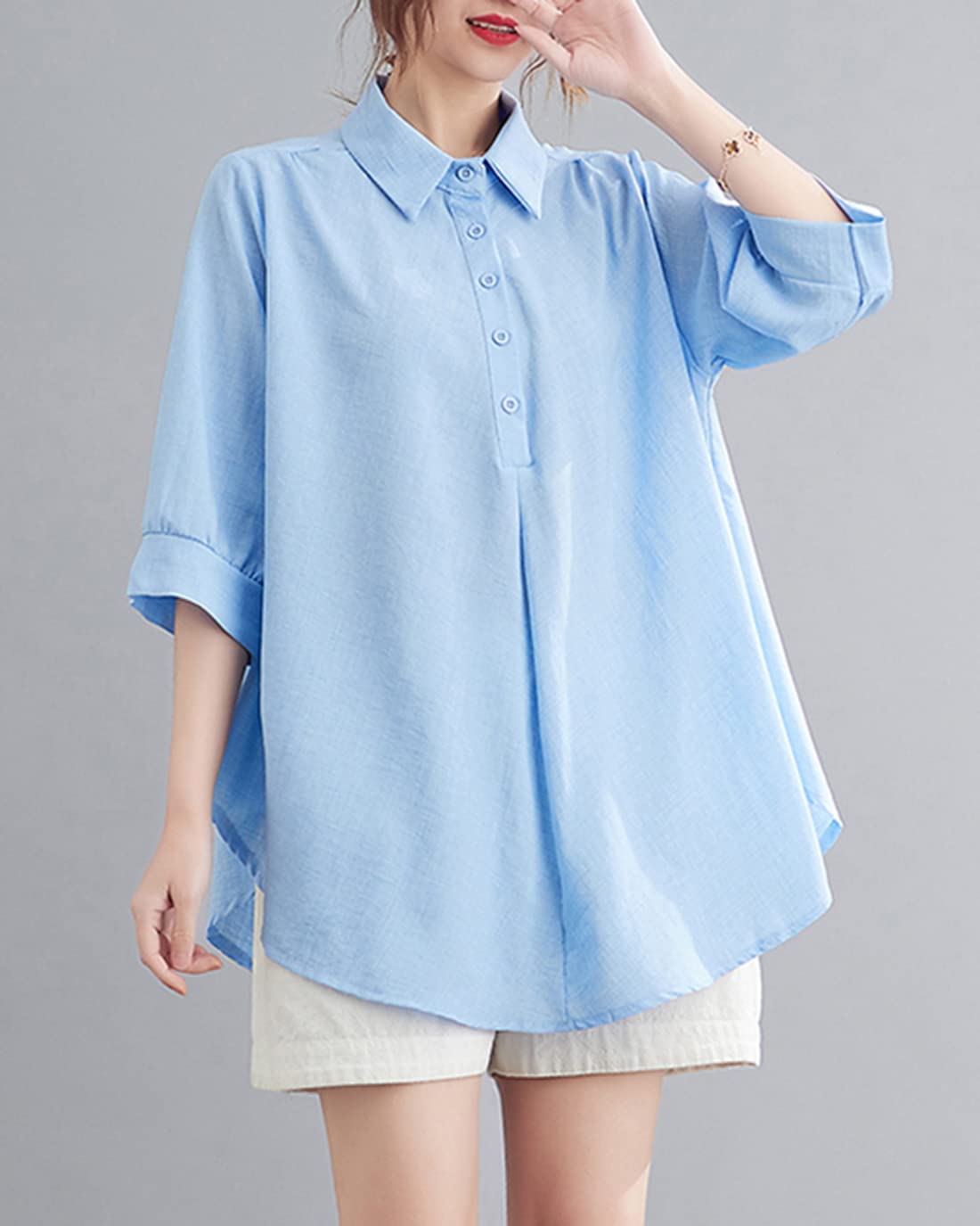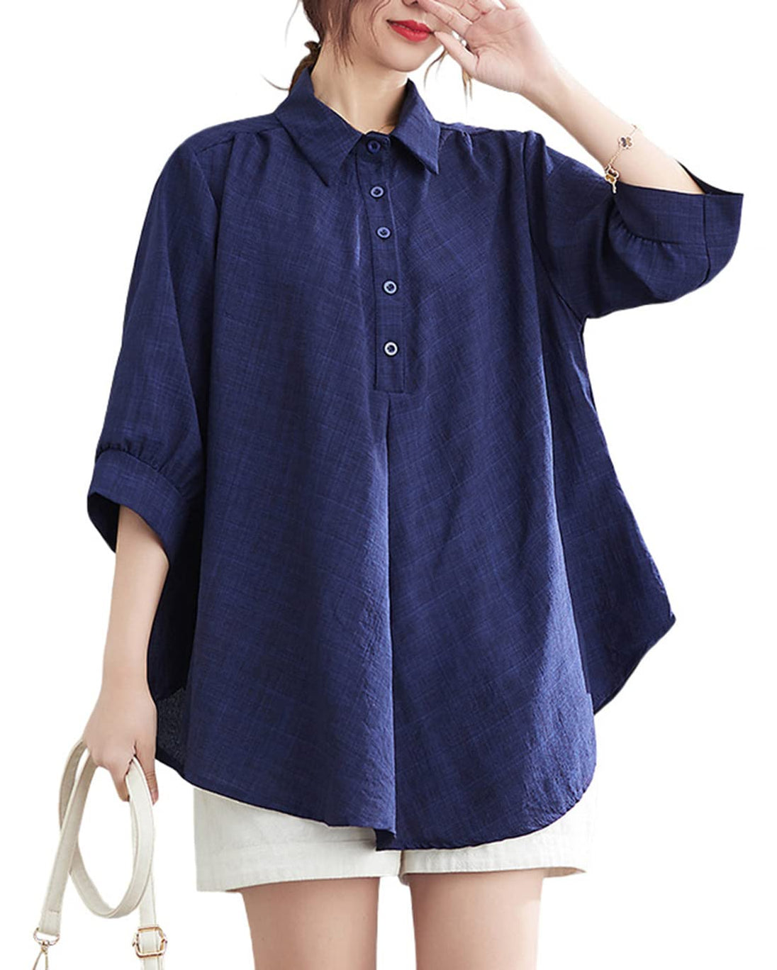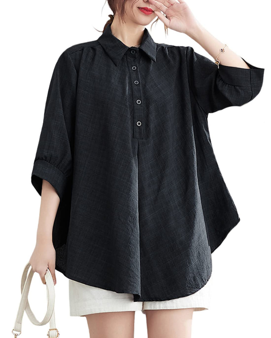 - 薄手の亜麻素材で作られたゆったりとしたシルエットのレディースシャツは、真夏に汗をかいてもすぐに乾く、使い勝手の良さからおすすめです。