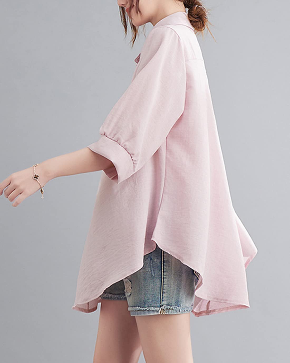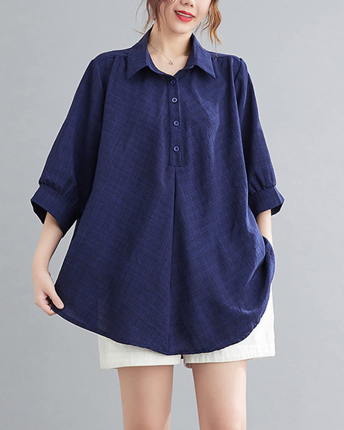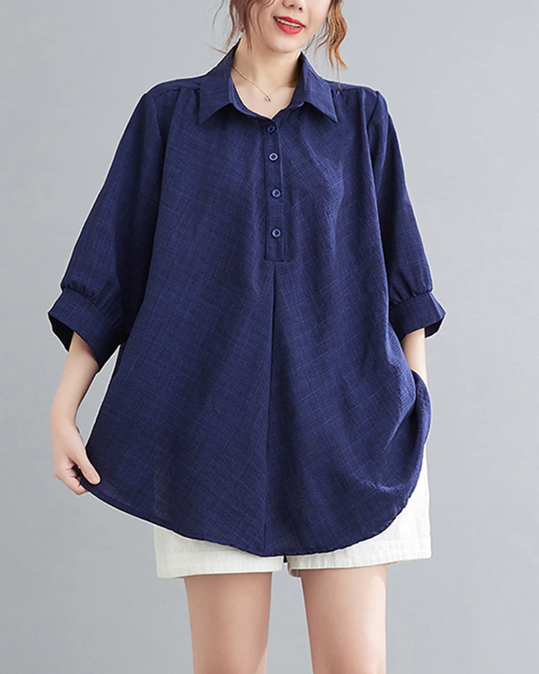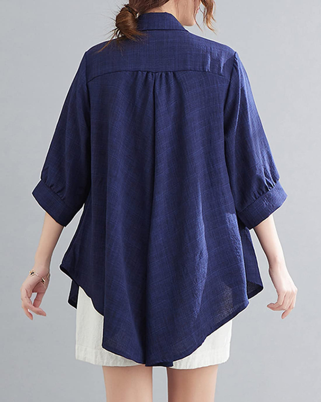 - 薄手の亜麻素材で作られたゆったりとしたシルエットのレディースシャツは、真夏に汗をかいてもすぐに乾く、使い勝手の良さからおすすめです。