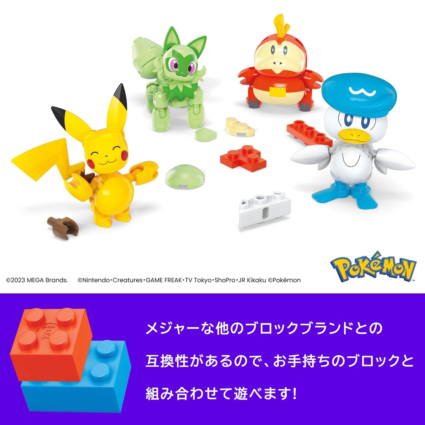 - Includes Pokemon from the Kanto Region.The set has 4 Pokémon figures, including Pikachu, Squirtle, Charmander, and Bulbasaur.130 pieces total.Build your Pokémon, decide your favorite and have a Pokémon battle! A perfect playset for first pretend play.