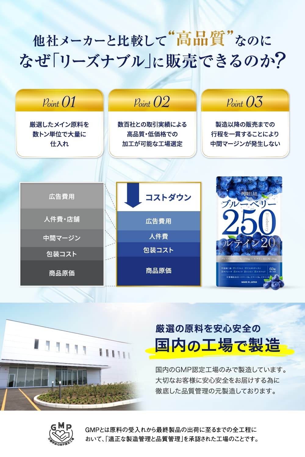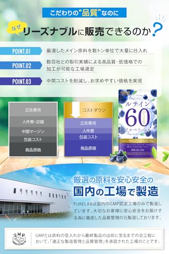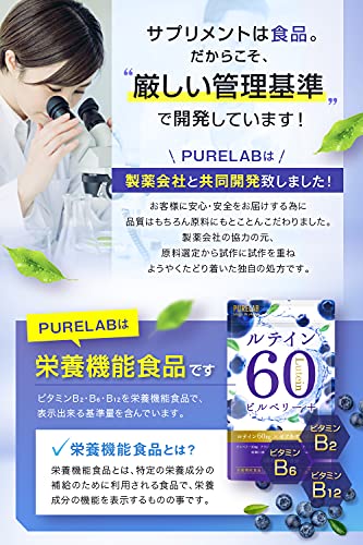 • ✅【ルテイン×ゼアキサンチン 配合】PURELABは、1日2粒でルテイン60mgとゼアキサンチン3mgを配合。ルテインは、マリーゴールド由来のフリー体原料を使用しています。