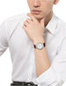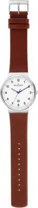 New color variations in our best-selling model. Stylish model with brown leather strap and blue hands.