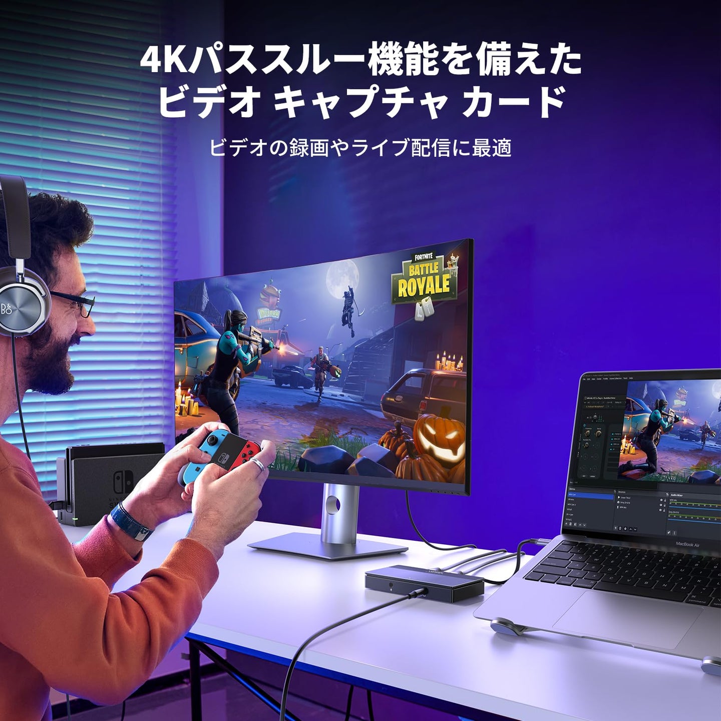 UGREEN 4K HDMI キャプチャーボード パススルー機能 4K@60Hz /1080P 60Hz 低遅延 ゲーム実況生配信 会議 ライブ配信 録画 画面共有 Switch PS5/PS4 Xbox Wiiu対応 Mac/Windows/Linux/Android/iPad OS17に適用