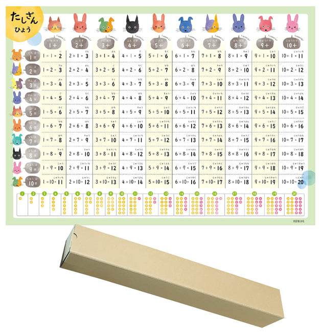 インド式かけ算 (19×19 暗算 解説付き) お風呂 ポスター いぬ ねこ うさぎデザイン 学習ポスター A2 (60×42cm) 小学生 インド式 ノートライフ 日本製 知育 算数 防水 (インド式)