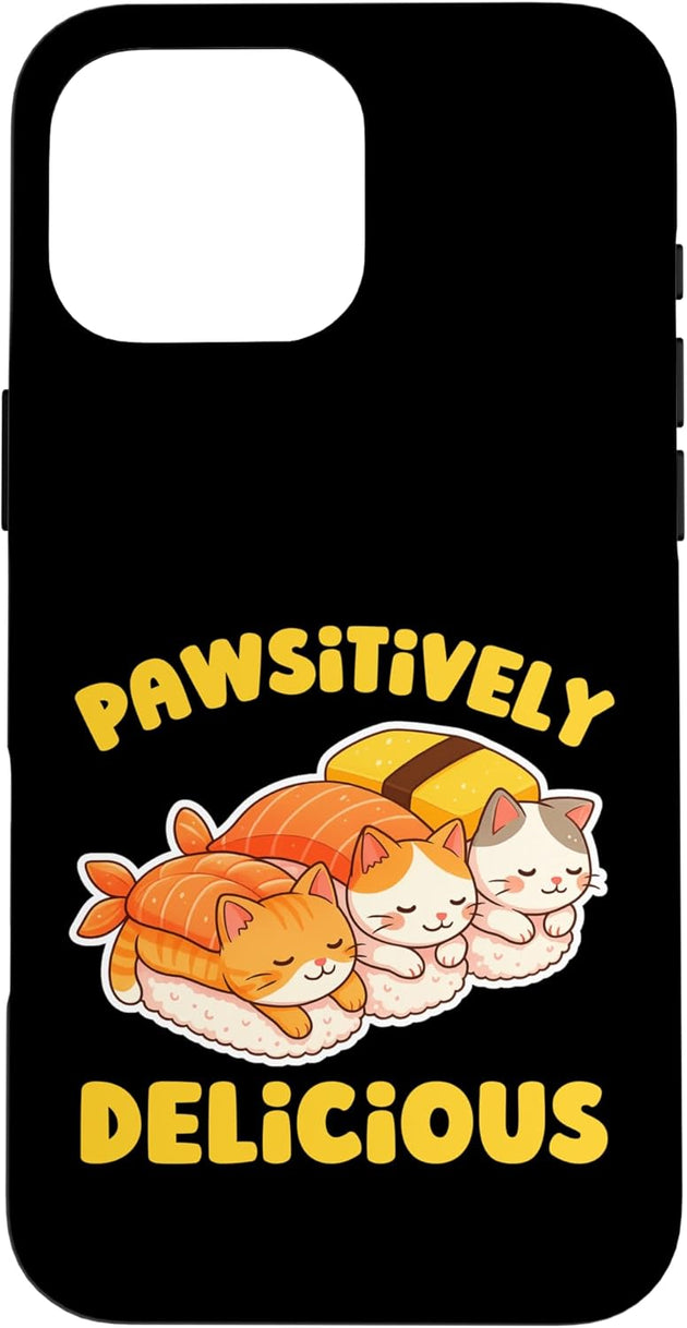 Pawsitively おいしい かわいい かわいい 猫 寿司 寝る スマホケース iPhone 16 用