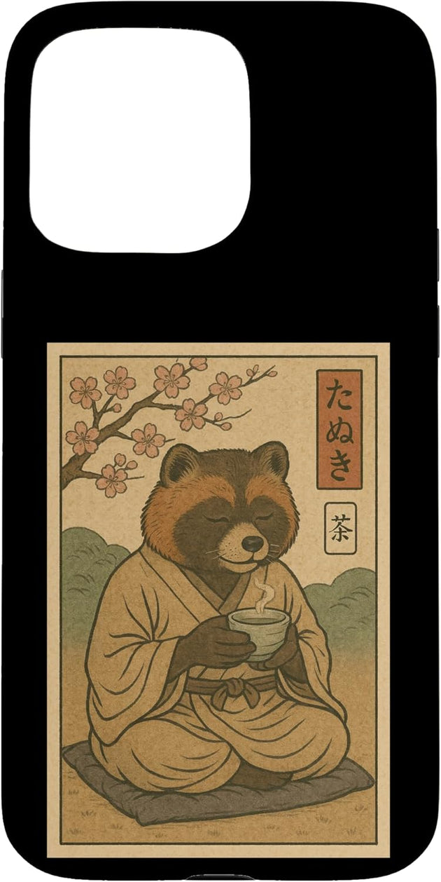 日本のアライグマ犬のお茶を飲む男の子、男性、女性、子供用。 スマホケース iPhone 15 Pro 用