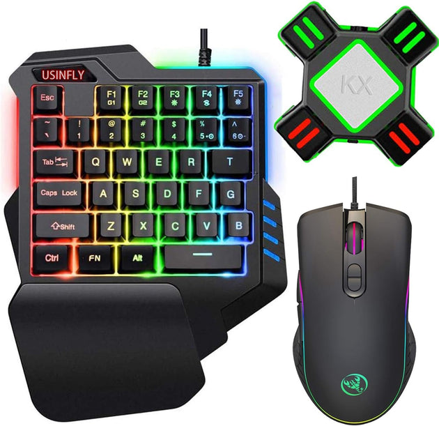 片手キーボード マウス コンバーター セット switch対応 フォートナイト用キーボード Switch/switch lite/PS4/PS3/Xbox対応 RGBゲーミングキーボード ゲーミングマウス 接続アダプターFPS/TPS/RPG/RTSなどに最適 日本語説明書付き USINFLY