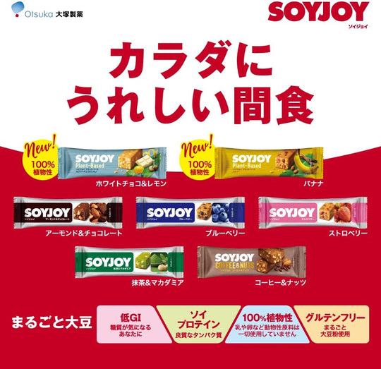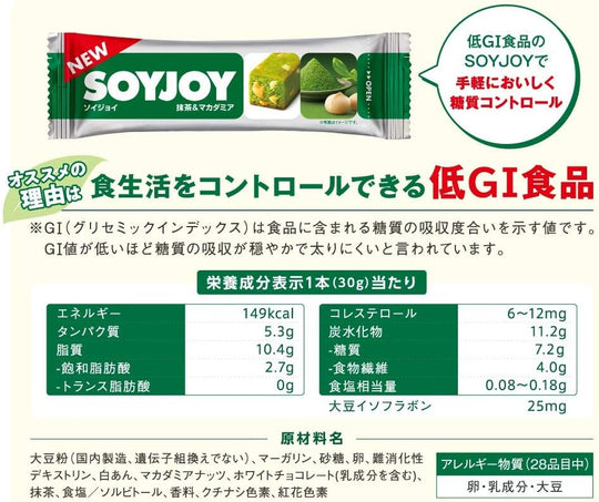 商品紹介 1小麦粉を使わず栄養豊富な大豆をまるごと粉にして使用。2ボロボロこぼれず、食べる時に音もしないので食べやすい。携帯・保存に便利3低GI食品。4グルテンフリー(米国FDA基準)。5ざくっとしたローストアーモンドの食べごたえ。*GI値が低いほど糖質の吸収がおだやかになるので、太りにくいと言われている。 1本当たり、タンパク質 5g、脂質 9.7g(飽和脂肪酸 2.2g、トランス脂肪酸 0g)、コレステロール 6~13mg、炭水化物 12.2g(糖質 7.6g、食物繊維 4.6g)、食塩相当量 0.09~0.20g、大豆イソフラボン 18mg 原材料・成分 大豆粉(国内製造、遺伝子組換えでない)、アーモンド、マーガリン、砂糖、卵、チョコレート(乳成分を含む)、難消化性デキストリン、アガベシロップ、ココアパウダー、イヌリン、食塩/香料 ご注意(免責)>必ずお読みください 開封後は早くお召しあがりください。 続きを見る 原材料:大豆粉(国内製造、遺伝子組換えでない)、アーモンド、マーガリン、砂糖、卵、チョコレート(乳成分を含む)、難消化性デキストリン、アガベシロップ、ココアパウダー、イヌリン、食塩/香料 内容量:30g×24本 カロリー:1本当たり 145kcal 商品サイズ(高さx奥行x幅):12.6cm×15cm×15.5cm 原産国:日本 風味 アーモンド&チョコレート ユニット数 24 個 ブランド ソイジョイ 対象年齢 大人 アレルギー情報 乳, 卵...原價 起價 2,697原價 起價 2,697 -