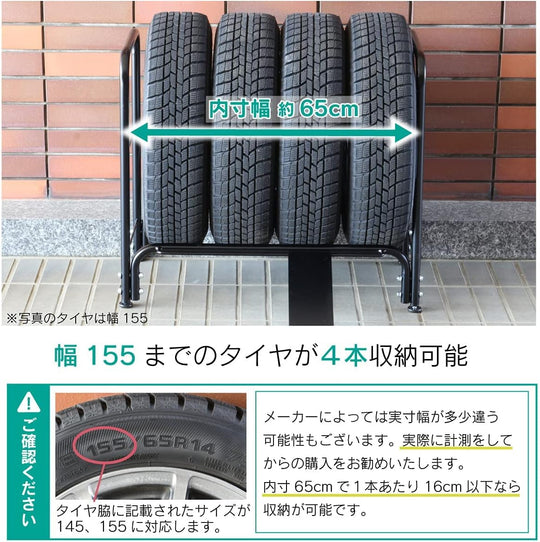 日本製の耐荷重120kgのタイヤ収納ラック。幅広のタイヤも4本入るワイドタイプ。日光や埃からタイヤを守るカバー付き。スロープ付きで重いタイヤの出し入れも簡単。 材質:スチール(メラミン樹脂焼付塗装) 耐荷重120kg 日本製(燕三条産) カバーサイズ 外径75cm以下 材質 金属 色 本体:ブラック カバー:シルバー 特徴 カバー付き 商品の寸法 38D x 117.5W x 61H cm 部屋タイプ ガレージ原價 起價 5,099原價 起價 5,099 -