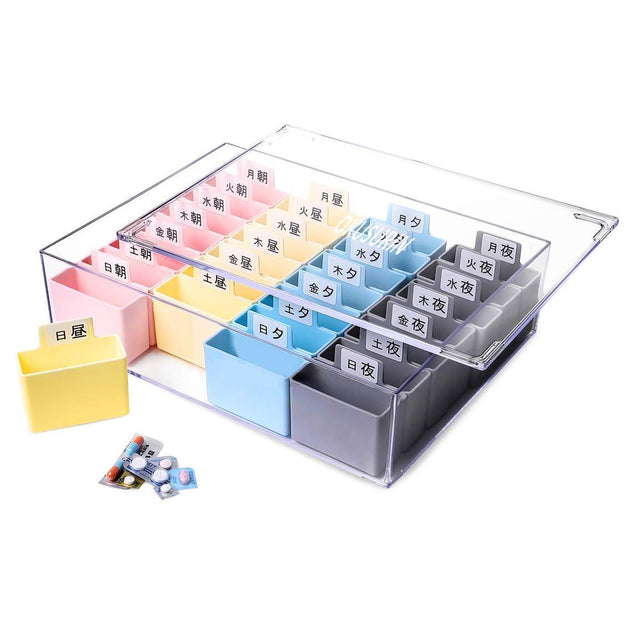 Sukuos ピルケース 薬ケース 1週間 1日2回 曜日別 朝昼晩に分け 飲み忘れ防止 サプリメントケース コンパクト 薬入れ 携帯用 日本語印刷され (透明)