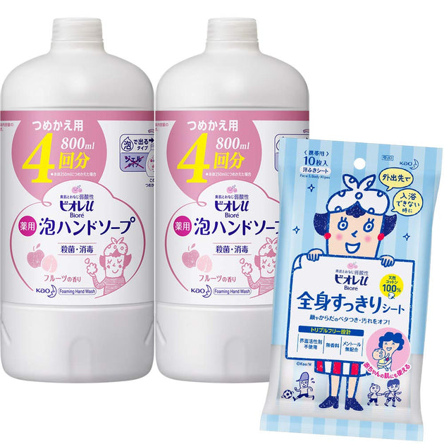 医薬部外品ビオレu 泡ハンドソープ フルーツの香り つめかえ用 800ml×2個 + ビオレu 全身すっきりシート 10枚入