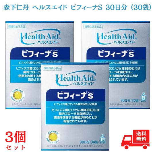 【3個セット】森下仁丹 ヘルスエイド ビフィーナS (スーパー) 30日分 (30袋) サプリメント ビフィズス菌 栄養補助食品 腸活 レモン風味