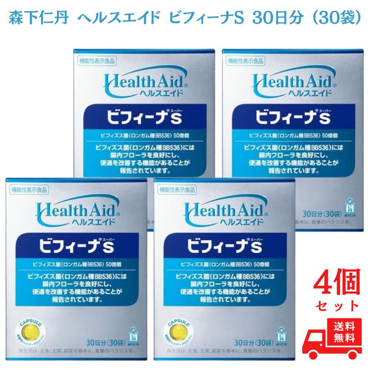 【4個セット】森下仁丹 ヘルスエイド ビフィーナS (スーパー) 30日分 (30袋) サプリメント ビフィズス菌 栄養補助食品 腸活 レモン風味