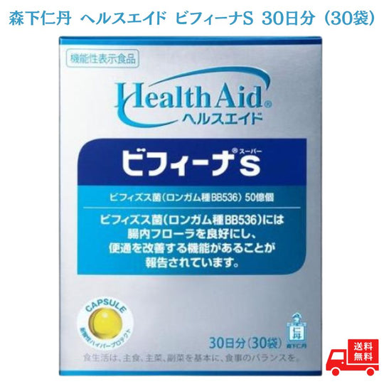 【送料無料】森下仁丹 ヘルスエイド ビフィーナS (スーパー) 30日分 (30袋) サプリメント ビフィズス菌 栄養補助食品 腸活 レモン風味