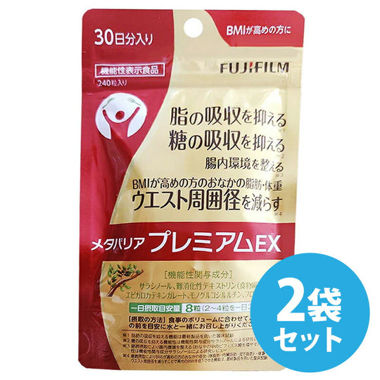 【2袋セット】メタバリア プレミアムEX 30日分 240粒【袋タイプ サプリメント サプリ サラシア 腸内環境 糖質 腸活 内臓脂肪 脂肪 体重 健康食品 ウエスト おなか BMI 健康管理 高め 富士フイルム 機能性表示食品 メタバリアEX シリーズ】