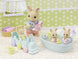 パフィはうきわを手放せない、慎重な男の子の赤ちゃん。妹のマフィが上手に泳ぐのでちょっとくやしいようです。泳げるように、お父さんと練習中です。