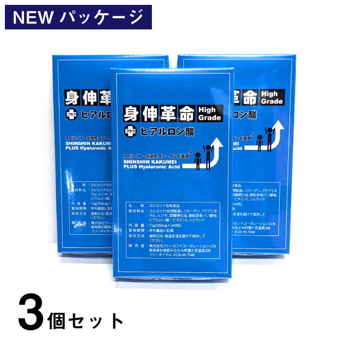 身伸革命ハイグレード プラス ヒアルロン酸 72g(300mg×240粒) 3個セット 栄養補給 補助 スピルリナ グルコン酸亜鉛 コラーゲン はシンプルで使いやすく、サプリ好きにぴったりのアイテムです。